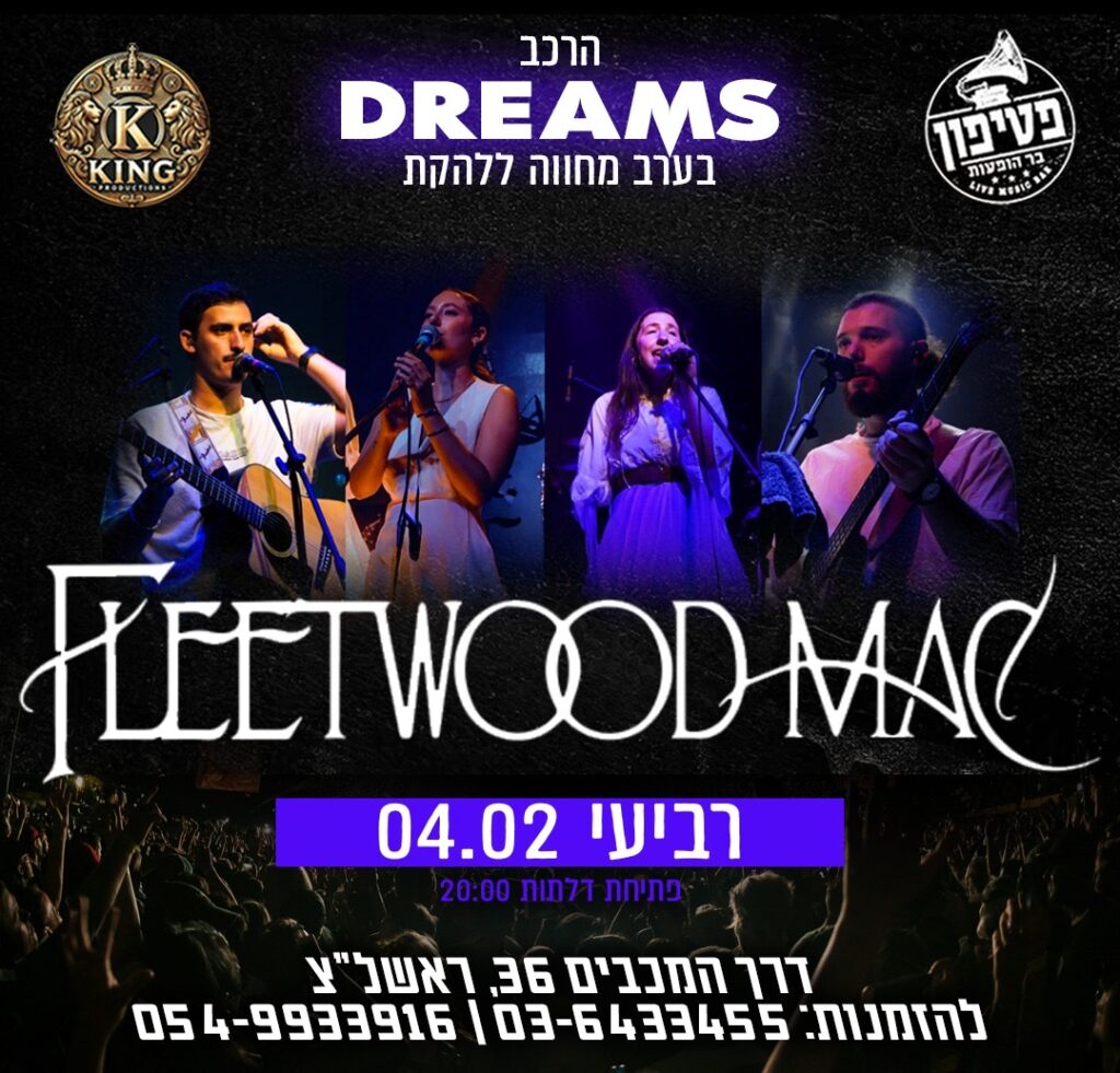 הלהקה Dreams מבית RoadShow מגישה מופע מחווה עוצמתי ומרגש ל־Fleetwood Mac – כולל ביצוע חי ומלא של האלבום האגדי Rumours, לצד להיטים מכל התקופות.